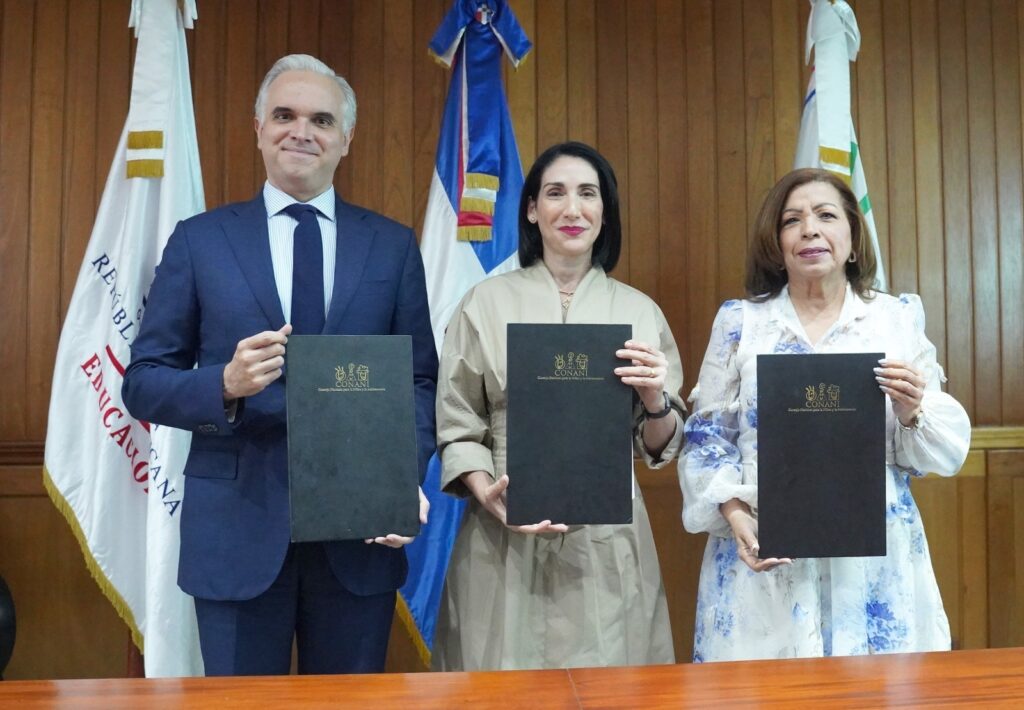 El convenio, rubricado por el ministro de Educación, Luis Miguel De Camps, la presidenta ejecutiva del CONANI, Ligia Jeannette Pérez Peña, y la primera dama Raquel Arbaje como testigo de honor, busca articular esfuerzos institucionales para garantizar el ejercicio de derechos, prevenir riesgos sociales y promover la reinserción educativa de menores fuera del sistema escolar.