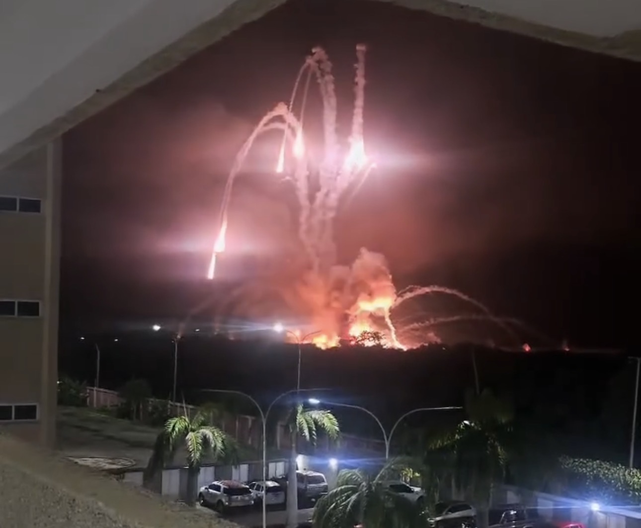 Así mismo indicaron que se vio humo levantar columnas sobre sectores al sur de Caracas, cerca de una base militar importante.