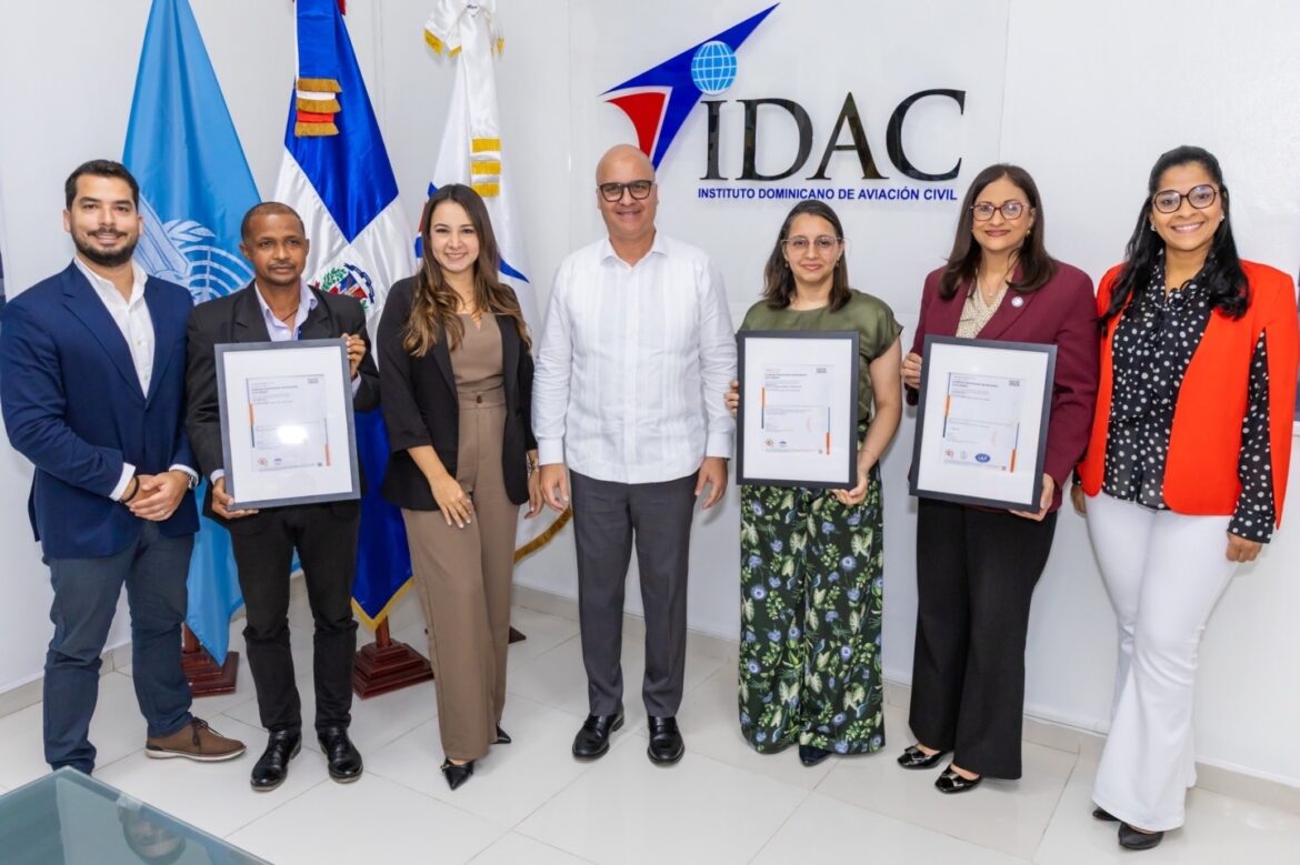 Santo Domingo.– El Instituto Dominicano de Aviación Civil (IDAC) recibió esta tarde la recertificación en las normas ISO 9001 de Gestión de Calidad, ISO 45001 de Seguridad y Salud en el Trabajo y ISO 14001 del Sistema de Gestión Ambiental, reafirmando su compromiso con la excelencia institucional y la mejora continua.