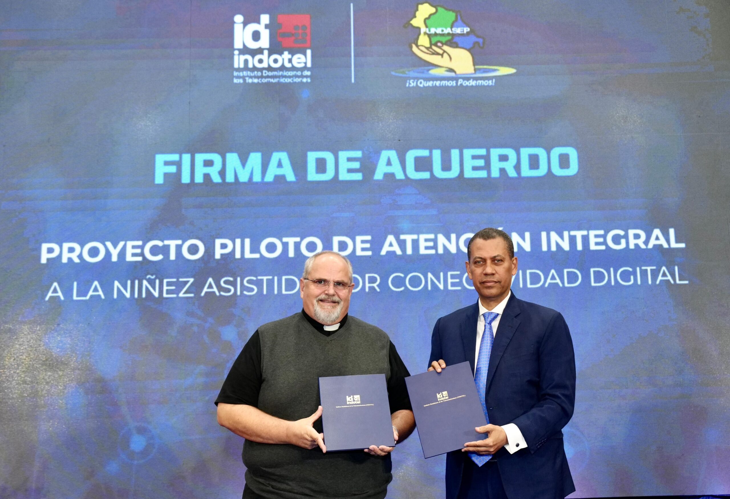 El convenio fue suscrito por Guido Gómez Mazara, presidente del Consejo Directivo de Indotel, y el reverendo padre Michael James Seis Sikora (Miguel Seis), presidente de FUNDASEP, formalizando una alianza orientada a acercar servicios pediátricos a niños y niñas de comunidades con limitaciones históricas de acceso.
