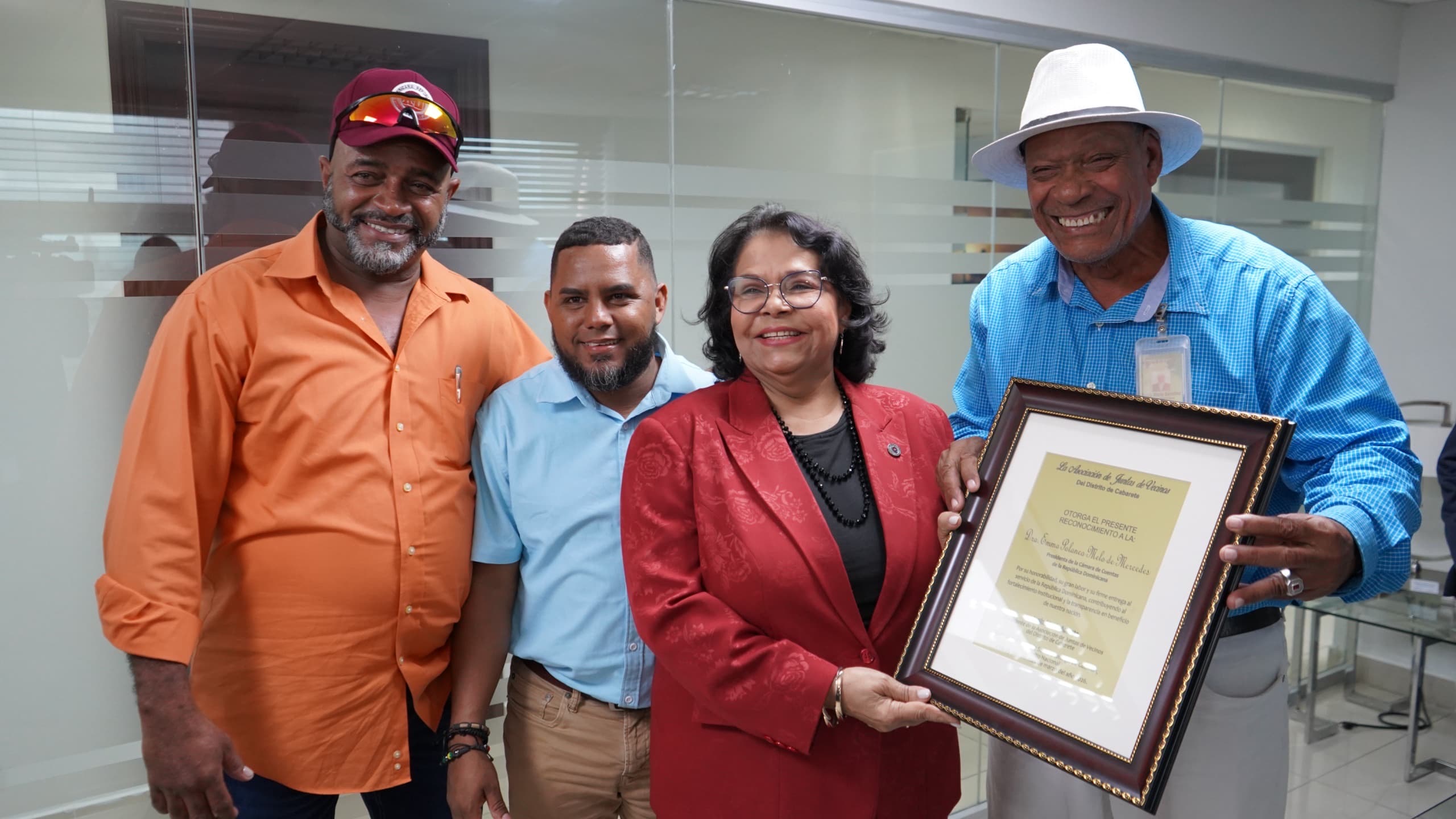 Santo Domingo, República Dominicana. – La Asociación de Juntas de Vecinos del Distrito Municipal de Cabarete, provincia Puerto Plata, entregó una placa de reconocimiento a la presidenta de la Cámara de Cuentas de la República Dominicana (CCRD), doctora Emma Polanco Melo, en la que destacan su honorabilidad, su destacada labor y su firme compromiso con el servicio al país.