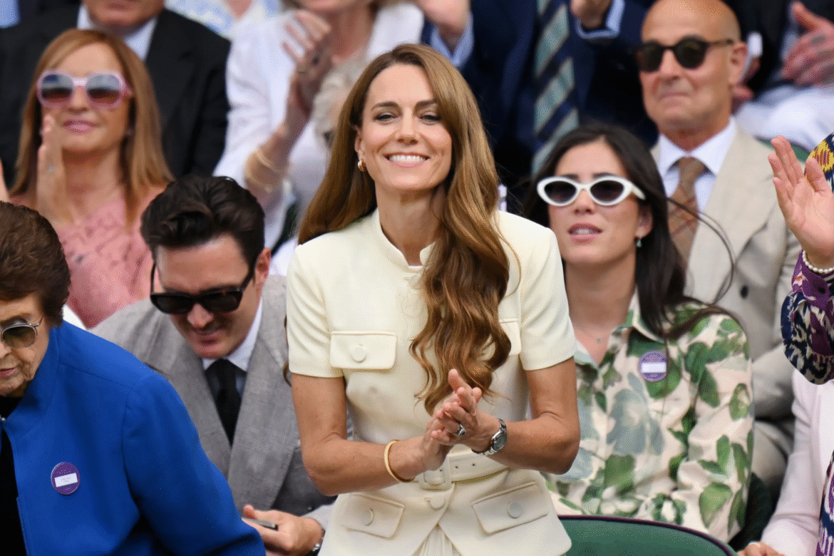 Este pequeño emblema, colocado en la solapa, es símbolo de pertenencia y tradición, y refuerza su vínculo con el torneo más prestigioso del tenis mundial. Curiosamente, volvió a llevar en su dedo anular el icónico anillo de compromiso, ausente en sus últimas apariciones públicas. En su muñeca, Kate volvió a lucir el elegante Cartier Ballon Bleu que le regaló el príncipe Guillermo con motivo de su tercer aniversario de bodas, un gesto de cariño que se ha convertido en uno de sus complementos más emblemáticos.