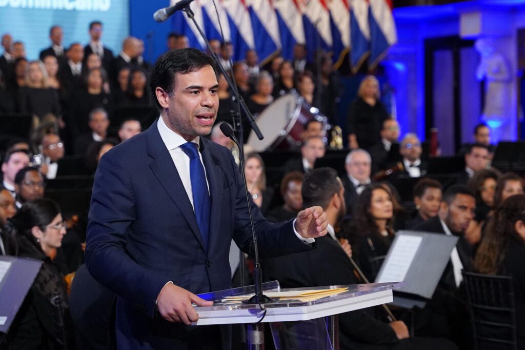 Santo Domingo.– El presidente Luis Abinader presentó esta noche en el Palacio Nacional una nueva grabación del himno nacional de la República Dominicana, interpretado por el Coro Nacional y la Orquesta Sinfónica Nacional, bajo la dirección del maestro José Antonio Molina.