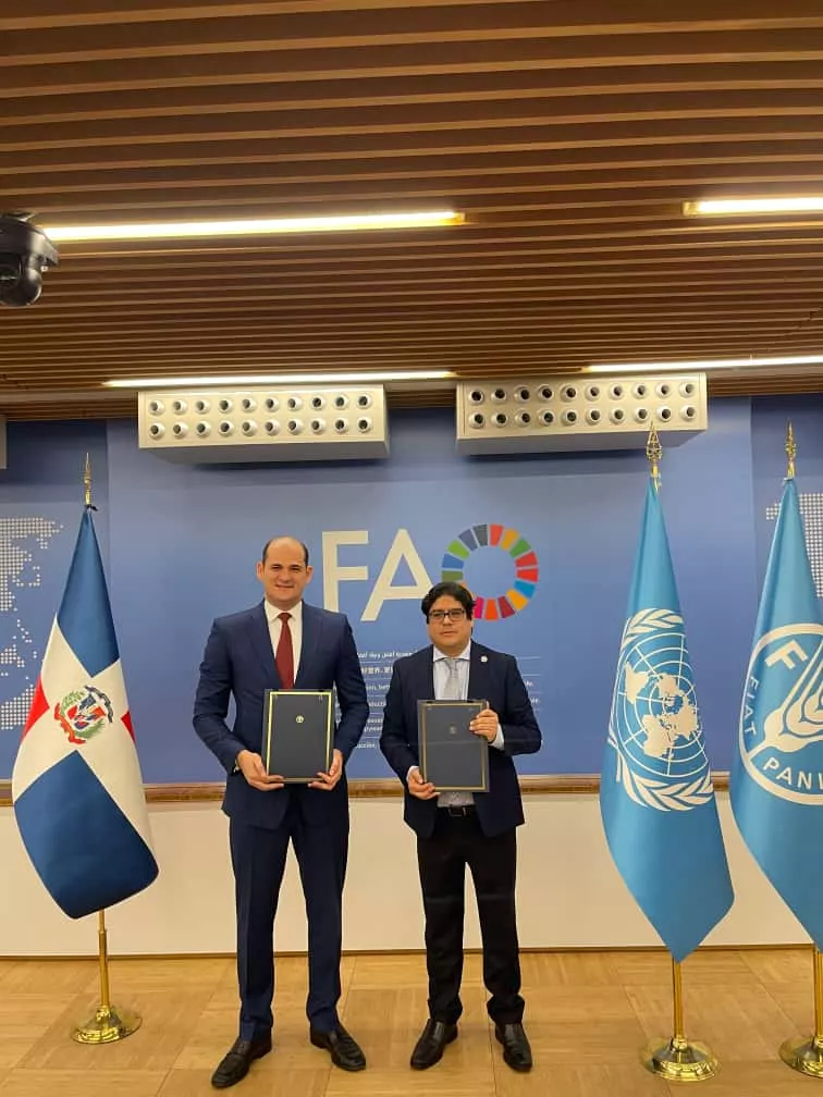 El convenio fue firmado por el representante de la FAO en República Dominicana, Rodrigo Castañeda Sepúlveda, y por el director ejecutivo del INABIE, Adolfo Pérez, en el marco de la participación de una delegación dominicana, encabezada por el ministro de Agricultura, Limber Cruz, en el Foro Mundial de La Alimentación 2025 y el 80 aniversario celebrado en esta ciudad, del 14 al 17 de este mes.